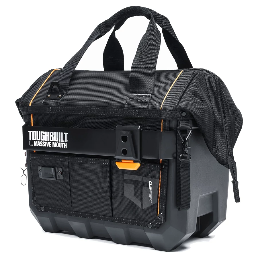 - Oldalán és elején több különálló szerszámtartó zseb található, valamint az elején lévő fémpántra a már megismert ClipTech csattal további szerszámos táska is felcsatolható
